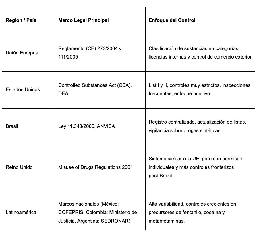 Comparativa Internacional: regulación de estas sustancias en otros países y regiones