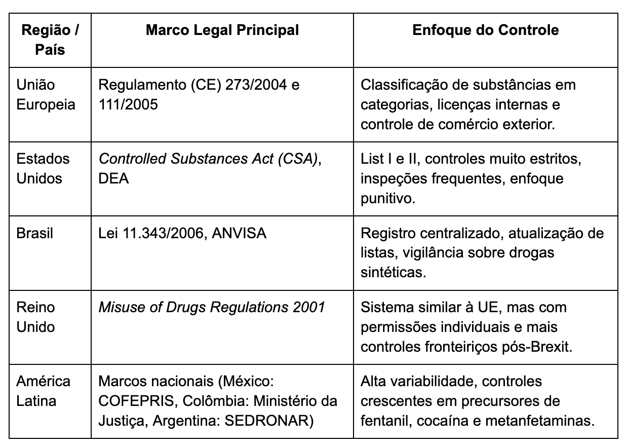 Comparativo internacional: regulamentação dessas substâncias em outros países e regiões