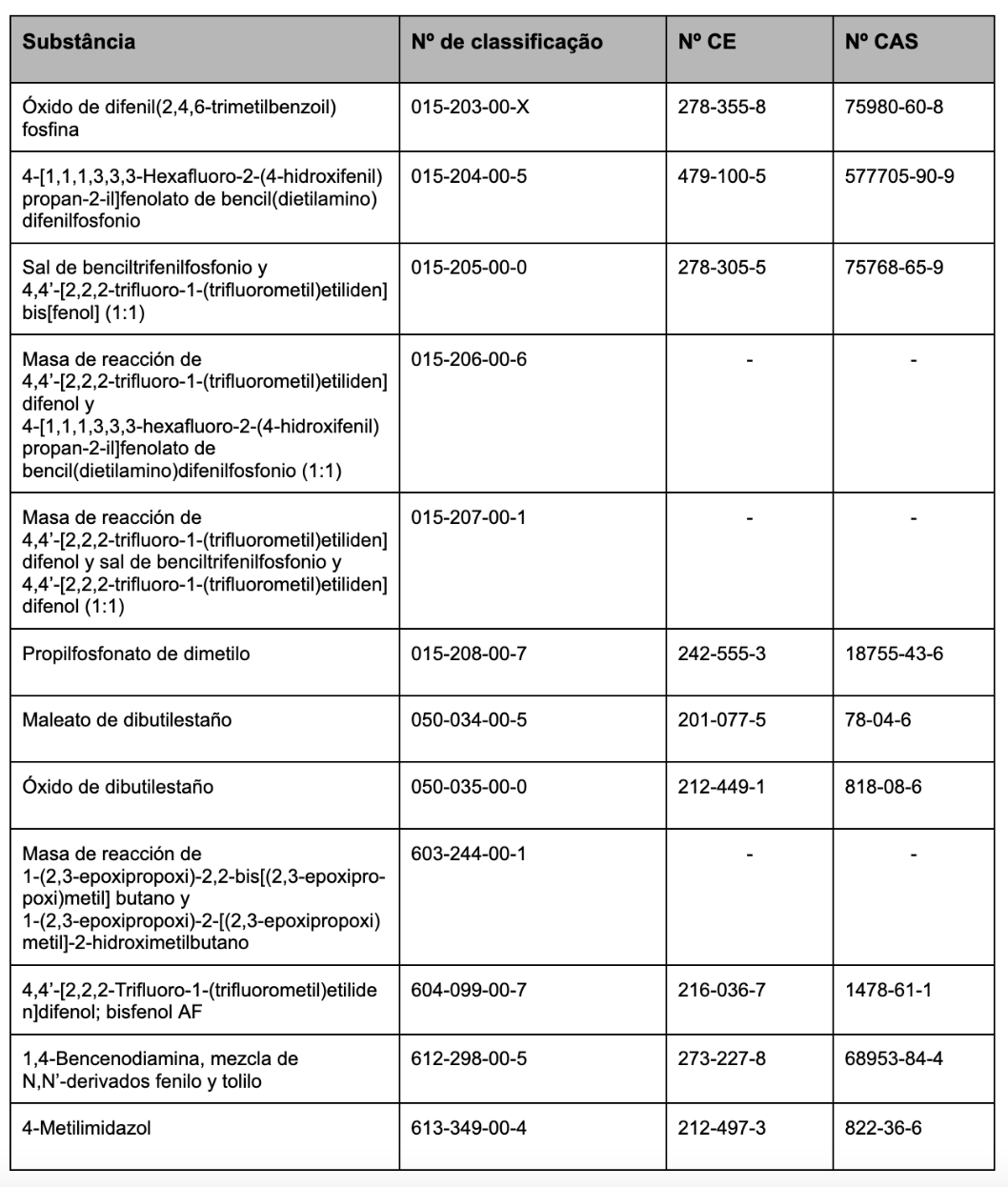 O Regulamento (UE) 2025/1731 introduz alterações nos Apêndices 2, 4 e 6 do Anexo XVII do REACH, incorporando novas substâncias classificadas como CMR de categoria 1B. Essas substâncias passam a estar sujeitas a restrições específicas, incluindo a proibição de sua comercialização e utilização em produtos destinados ao público em geral.