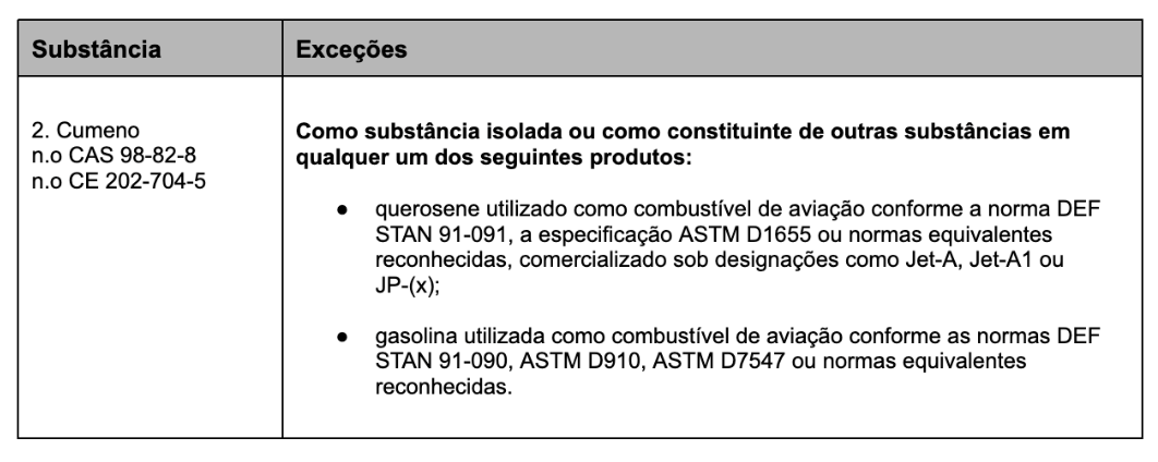 As restrições de substâncias químicas serão aplicáveis a partir de 1º de setembro de 2025, ainda que os operadores possam optar por implementá-las antes desse prazo.